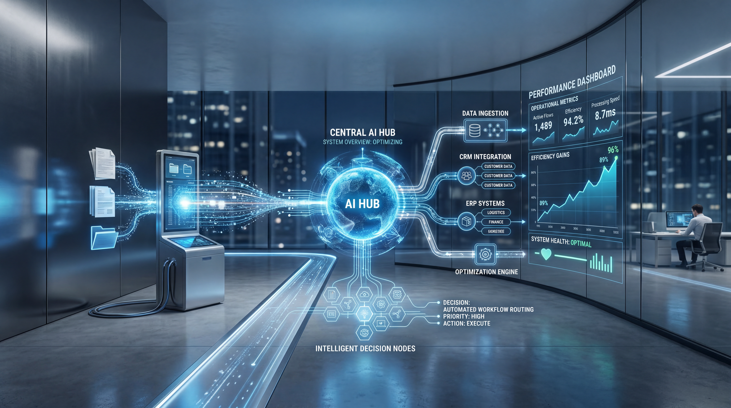 We replace manual, inefficient workflows with AI-driven systems that analyze information, make decisions, and execute work automatically—improving profitability, enabling scalable growth, and freeing teams to focus on higher-value work.
